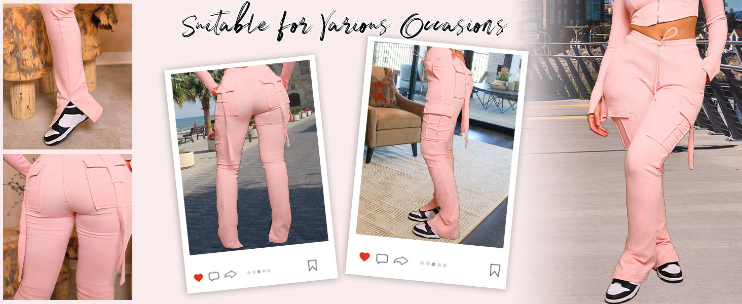 - Functional Design: With a split hem and functional pockets, these trousers seamlessly combine fashion with functionality, allowing you to carry essentials while looking chic.